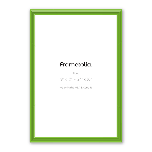 Elevate your wall décor game with Frametolia's green picture frames. Choose from vibrant hues to muted tones, with or without a mat, and revel in the magnificence of our 100% Italian wood molding, crafted locally with love. Our frames come with hanging hardware and wire included for easy installation.