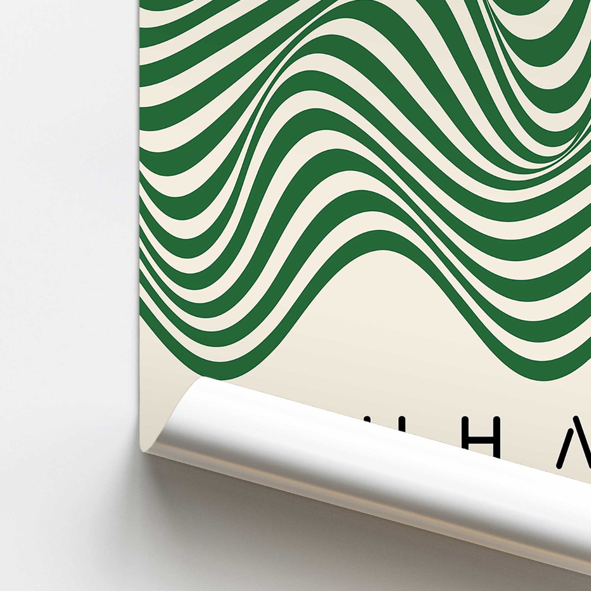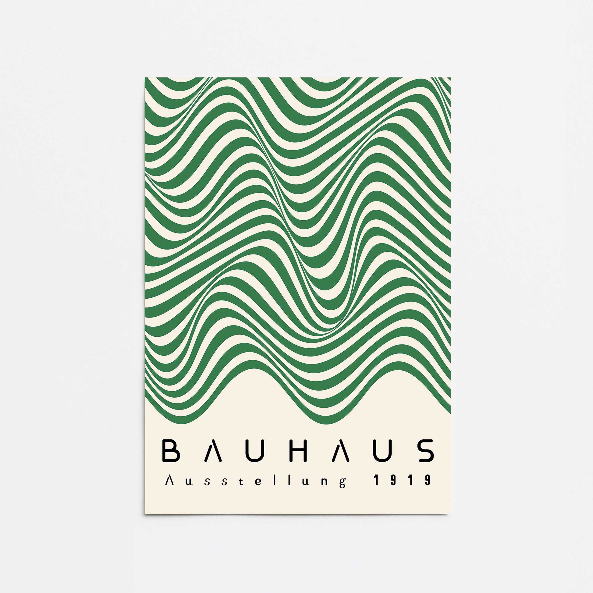 Enhance your interior with the Bauhaus Curves in Motion art print, a striking representation of fluidity and balance in design. This print features flowing green lines arranged in a rhythmic wave, adding a touch of movement and modernity to any space. · Characteristics: ,,