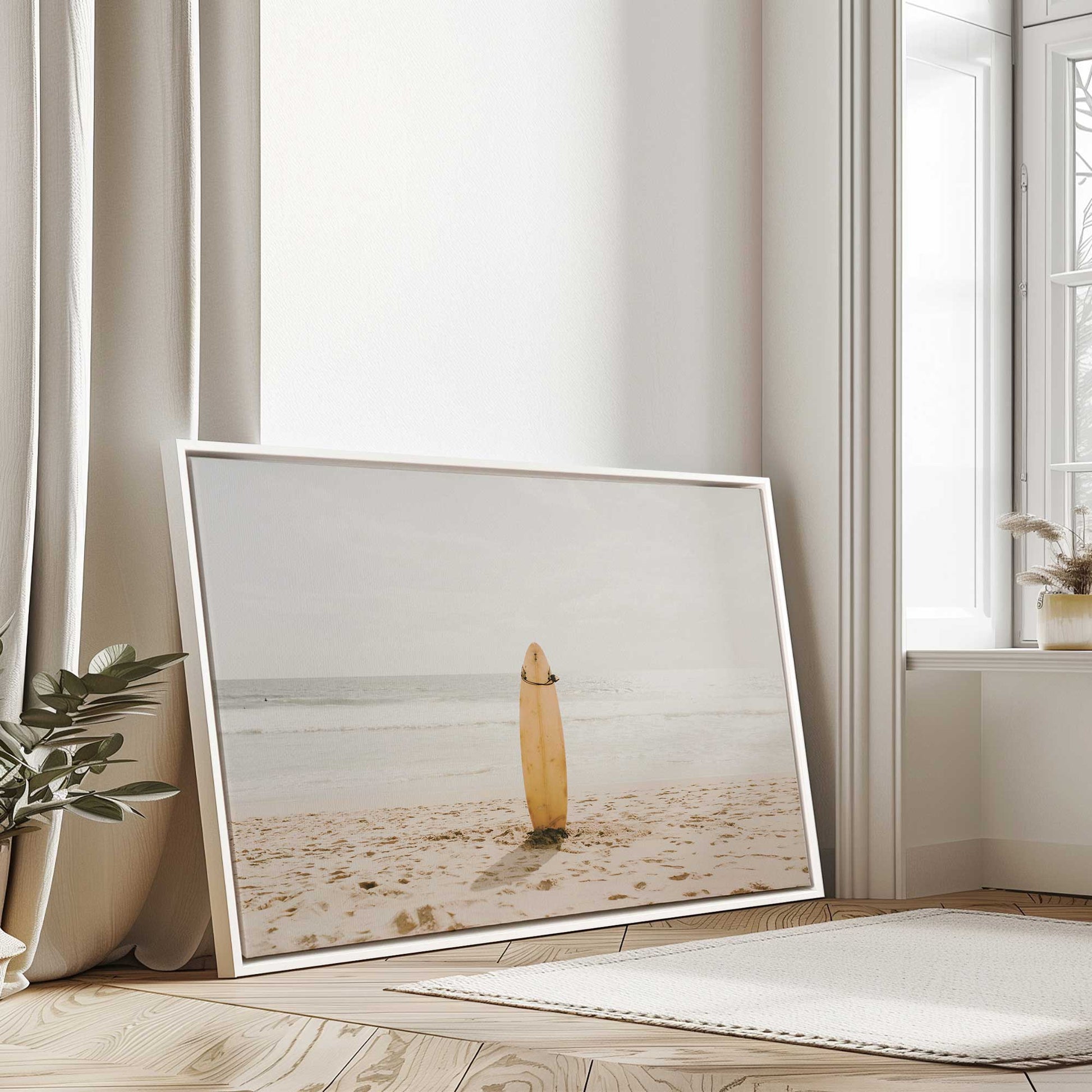 Immerse yourself in the tranquil solitude of the beach with the "Solitary Surf II" art print. This captivating piece features a lone surfboard standing tall against the backdrop of a serene seascape. The soft hues of the sand and sea create a calming atmosphere, perfect for bringing a touch of coastal serenity to your home decor. Ideal for beach lovers and those seeking a peaceful, minimalist aesthetic, this print captures the essence of the surf culture and the quiet beauty of an unspoiled shoreline. Enhance your space with this serene reminder of the ocean's timeless