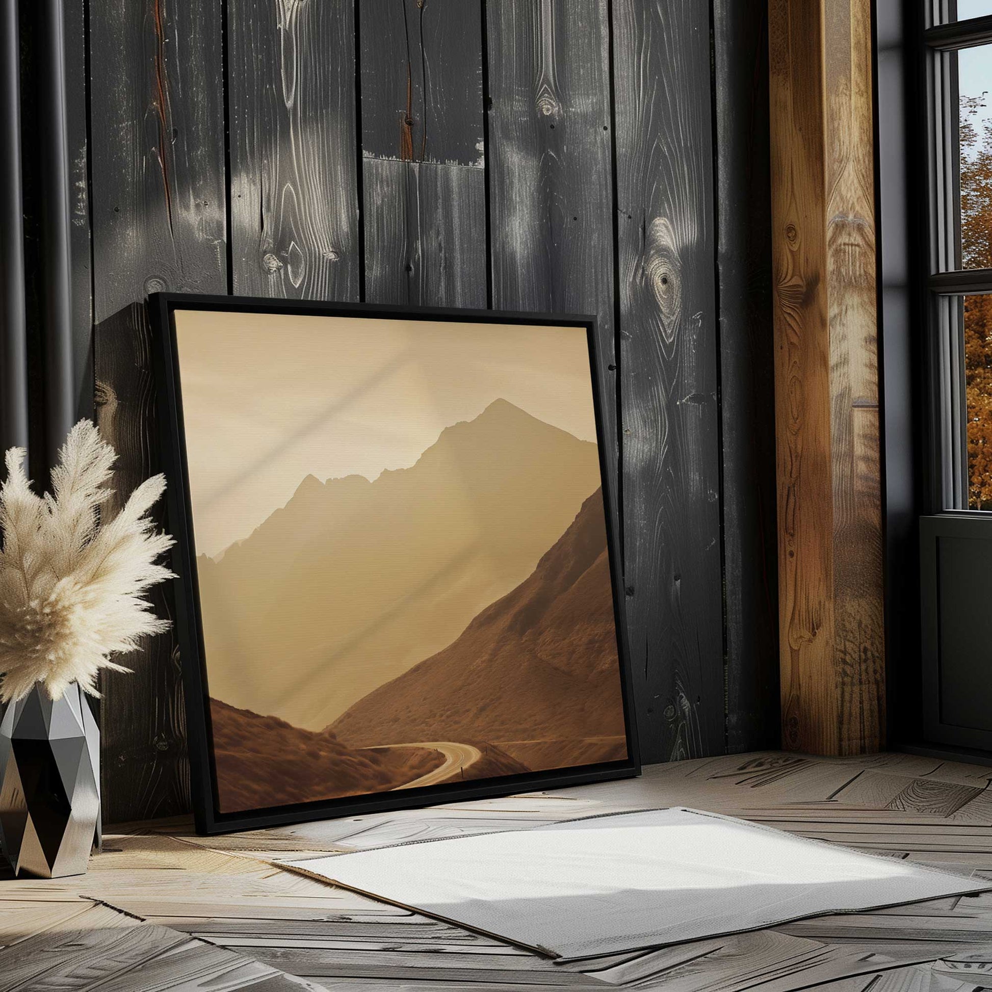 · Every piece of art is meticulously chosen and enhanced by our skilled design team to capture the essence of our signature Frametolia style. · Characteristics: sepia,farmhouse,mountains