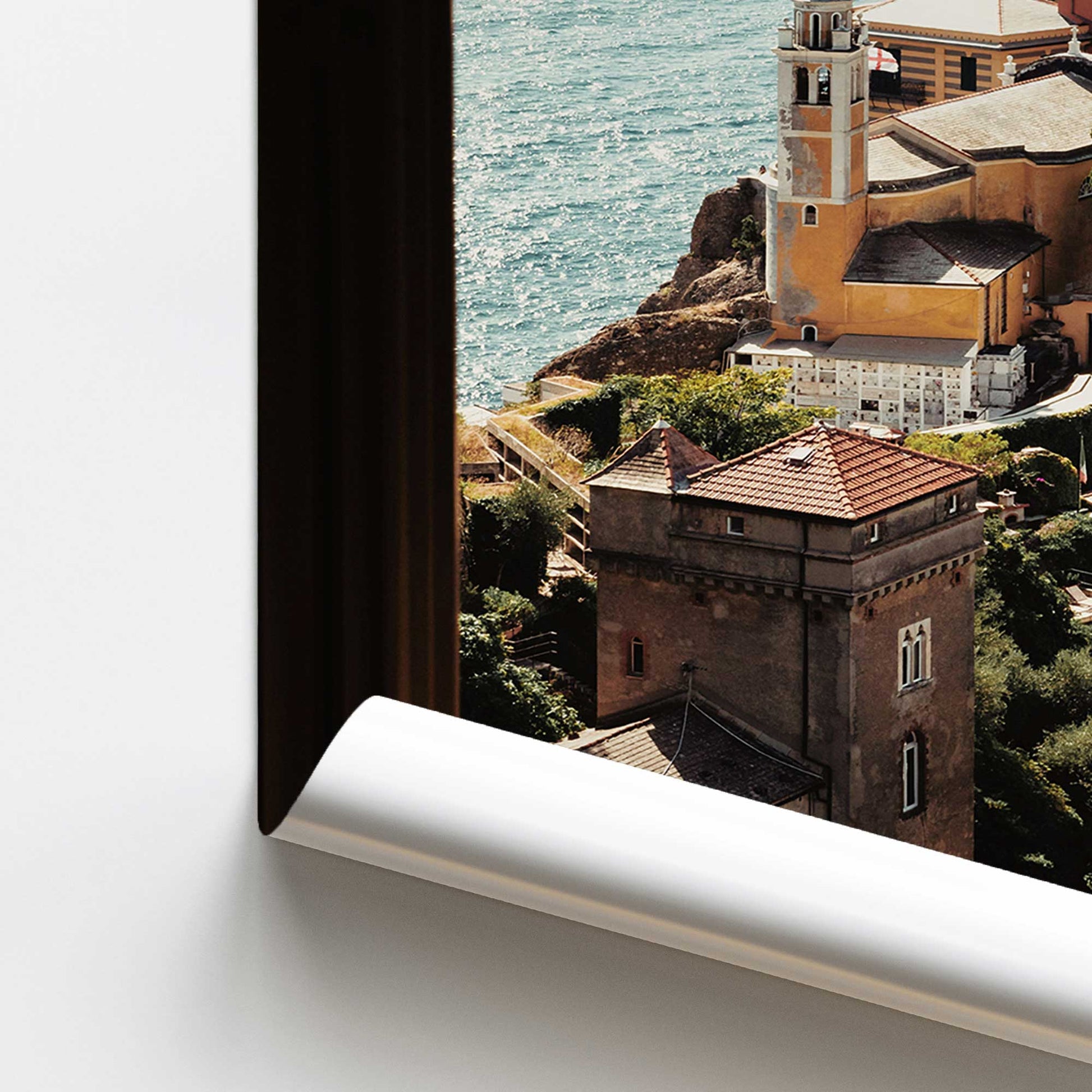 Transform your space with the captivating view of Window to the Sea. This enchanting piece offers a glimpse through a rustic window, revealing a picturesque coastal village bathed in sunlight. The charming architecture and the shimmering sea create a harmonious blend of serenity and beauty, making this artwork a perfect addition to any home. Let this piece transport you to a tranquil seaside escape, adding a touch of Mediterranean charm and a sense of peaceful retreat to your decor.
